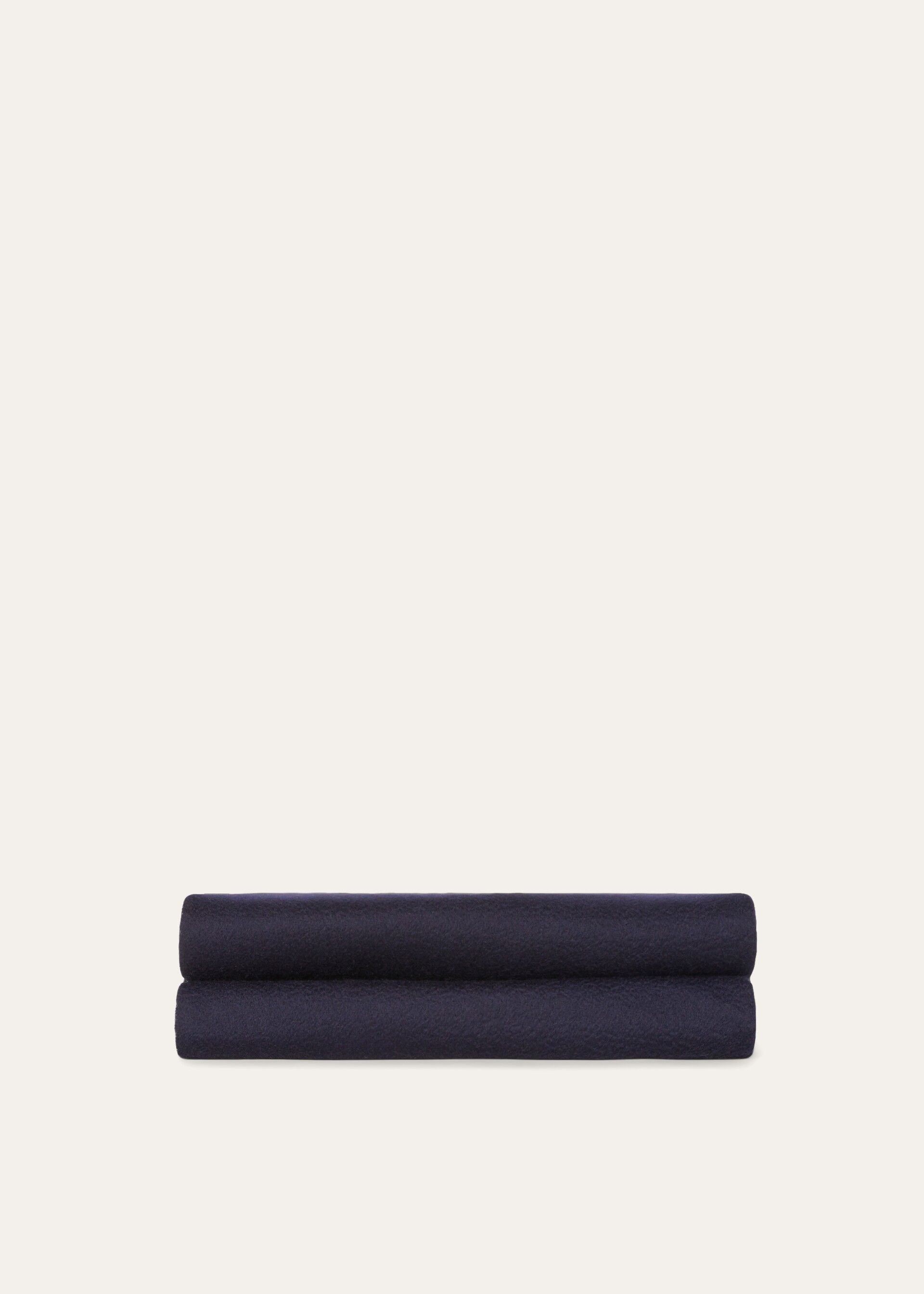 بطانية ناعمة ومُغلِّفة من الكشمير مع أهداب رقيقة. صُنعت باستخدام تقنية تسمى "frisson"، حيث يتم تمشيط النسيج بمشط مصنوع من ألياف نباتية لنفش المادة وتفتيح اللون وإنشاء لمسة نهائية فائقة الدقة. هدية Loro Piana الكلاسيكية.
